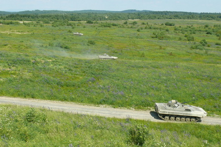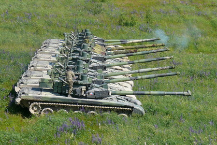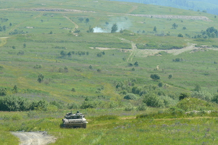 Tank T-72M4CZ v průběhu bojových ostrých střeleb