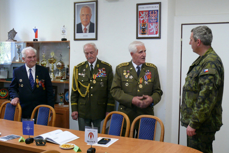 Pplk. Šerák, gen. Končický, plk. Opočenský a velitel 7. mb plk. Ivo Střecha během předávání Pamětních odznaků