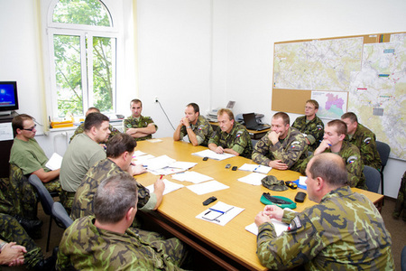 Ač nejsou právě na fotce, i ve štábu řídícím armádní úkolové uskupení jsou vojáci, kteří byli vyplaveni