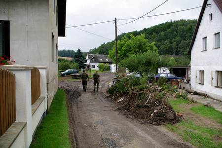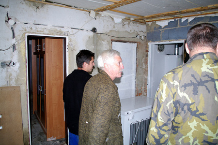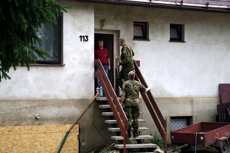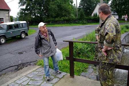 Zástupce velitele 31. brchbo plk. Miroslav Beran jde navštívit jednoho se svých vyplavených kolegů