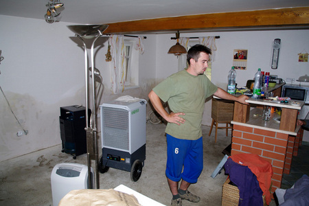 Kolegové z práce pomohli rodině ve volném čase otlouct omítku z mokrých stěn
