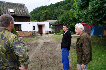 Nadrotmistr Martin Š. dům právě rekonstruuje, před povodní si nechal dovézt tatru písku a toto mu z ní po řádění živlu zůstalo