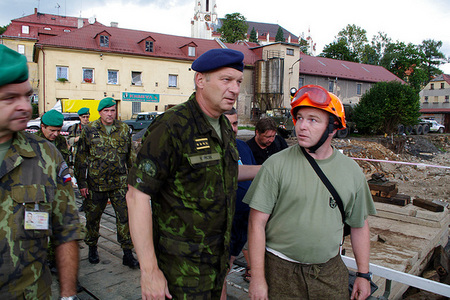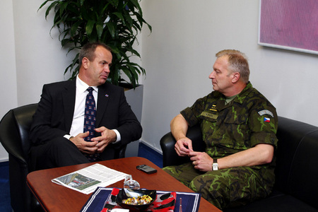 Hejtman Libereckého kraje a náčelník Generálního štábu při vzájemném rozhovoru