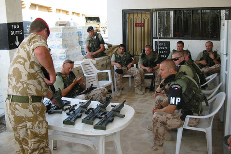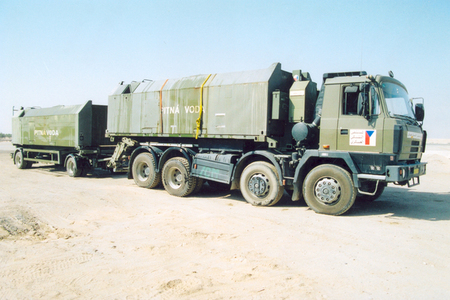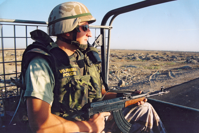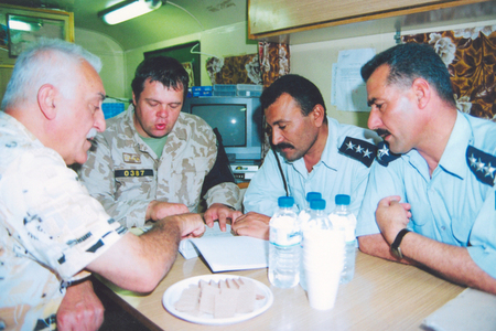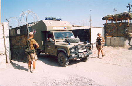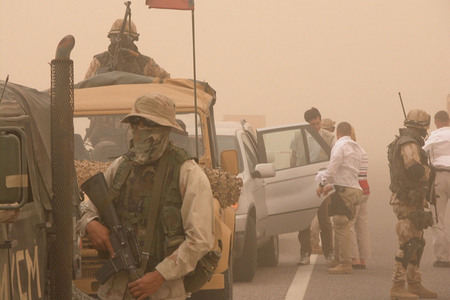 Vojenští policisté zajišťovali rovněž ochranu reprezentantů státu, zde tehdejšího náměstka ministra zahraničních věcí Alexandra Vondry při cestě písečnou bouří do Bagdádu.
