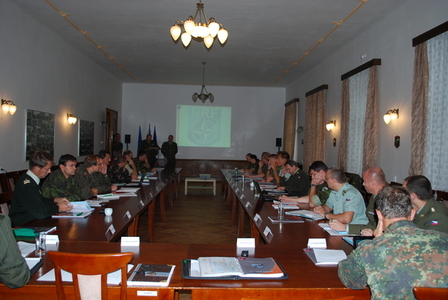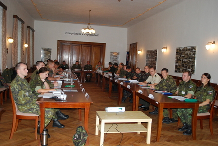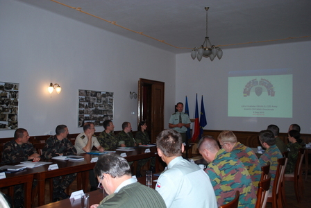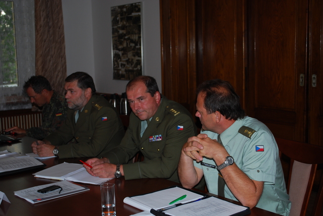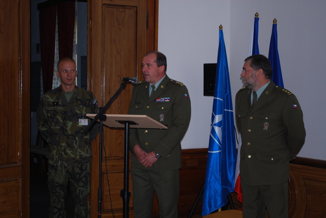 Zleva: velitel mnohonárodního praporu major Havel, velitel 31. brchbo plukovník Knopp a náčelník CHV plukovník Huleja