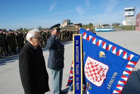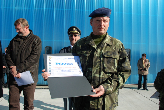 Zástupce velitele 22. základny letectva plk. gšt. Josef Pospíšil převzal Dekret o dekorování bojového praporu za rozvíjení tradic 311. perutě