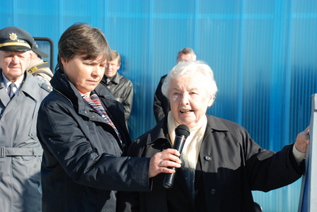 Místopředsedkyně Sdružení československých zahraničních letců v letech 1939-1945 a patronka 222. výcvikové letky dipl. Ing. Vlasta Šišková pozdravila přítomné účastníky nástupu