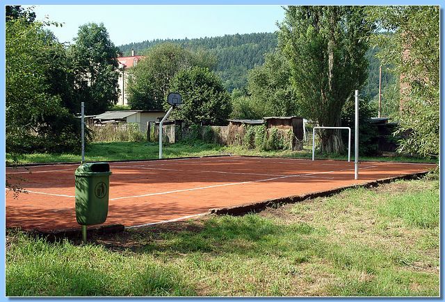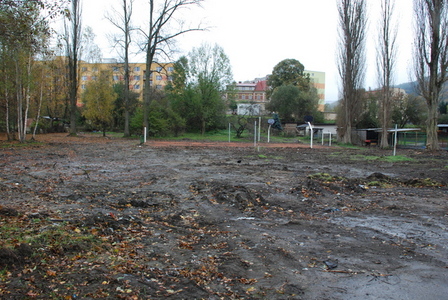 Vodou poničené sportoviště v Nádražní ulici, na jehož opravu peníze z letecké základny půjdou