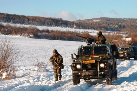 Vojáci zabezpečují prostor před přistáním vrtulníku