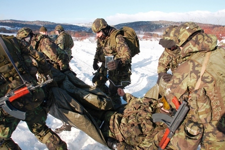 Zraněný voják obdrží na místě okamžitou pomoc