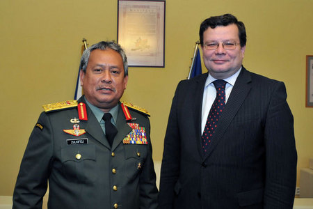 Generál Dato´Sri Zulkifeli bin Mohd Zin a Alexandr Vondra v pracovně ministra obrany ČR