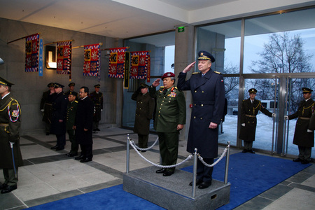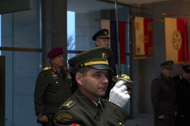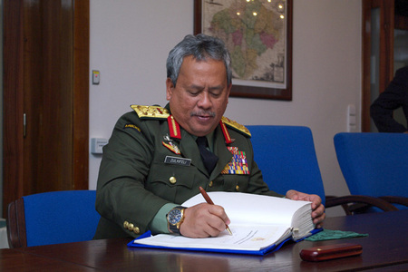 Generál Dato´ Sri Zulkifeli bin Mohd Zin přebírá hlášení od velitele čestné stráže