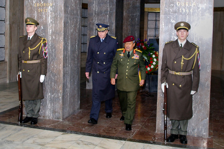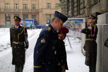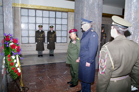 Generálové položili věnec k hrobu Neznámého vojína v kolumbáriu Národního památníku na Vítkově