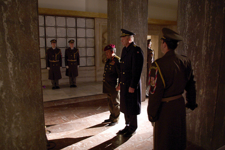 Generálové před hrobem Neznámého vojína v kolumbáriu Národního památníku na Vítkově