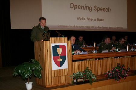 Náčelník štábu sil podpory brigádní genrál Pavel Rybák podává hlášení generálmajoru Tesaříkovi