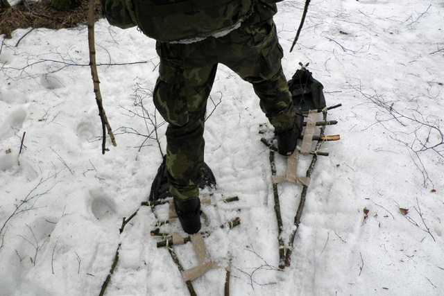 Pohled na improvizovaný prostředek k přesunu na sněhu - sněžnice