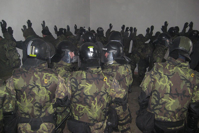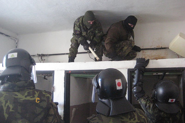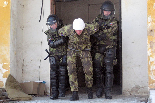 Velitel praporu pplk. Jan Cífka společně s instruktory od vojenské policie a stálé pořádkové jednotky PČR