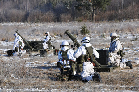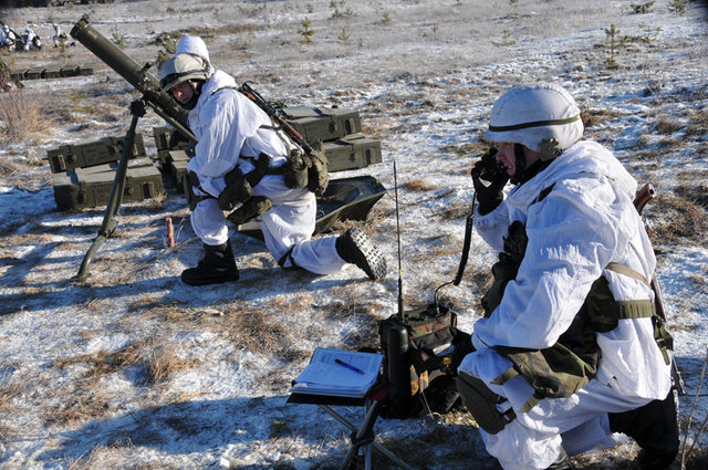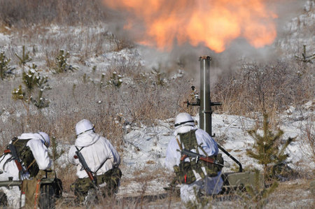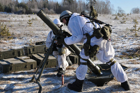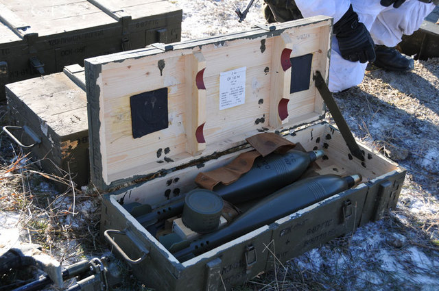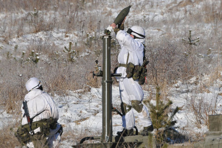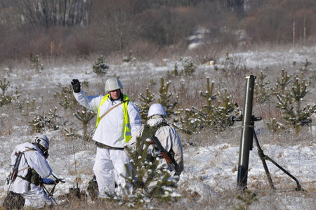 Obsluha řídícího minometu, od kterého ostatní nastavují prvky nutné pro vedení přesné střelby