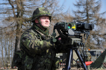 Vzdušný pozorovatel na cvičení plnil i roli strážného velitelského stanoviště - četař Petr Šimčík