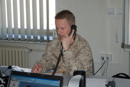 Náčelník oddělení taktického simulátoru zadává instrukce operátorům z plánu rozehry