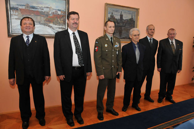 Zleva: plk. Jindřich Sitta a plk.Pavel Budínský působili v operaci ve zdravotnickém týmu, prap. Radim Šnorych, velitel - plk. Ján Valo, pplk, Petr Poledník a plk. Vladimír Braun