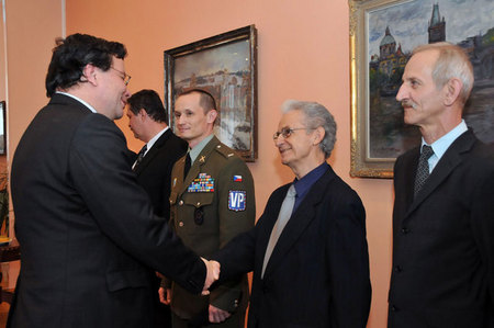 "Já si vás pamatuji z té doby," řekl ministr Vondra, když si s plk.Valo podával ruku