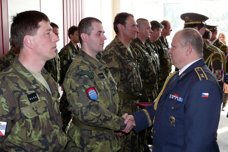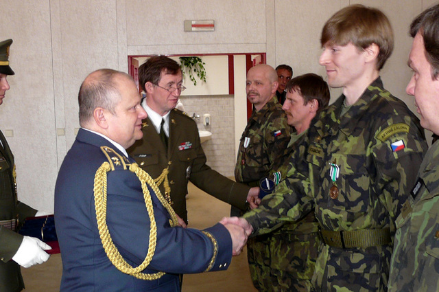 Generálmajor Tesařík gratuluje vyznamenaným příslušníkům Aktivní zálohy AČR