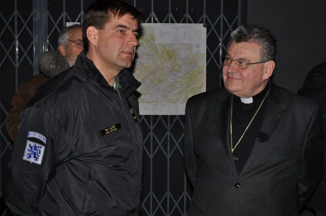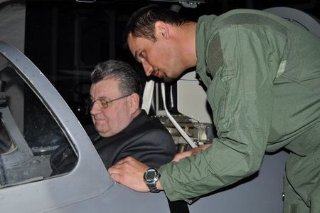 Pan arcibiskup na simulátoru KTL-159 v doprovodu velitele 212. taktické letky majora Davida Řehy