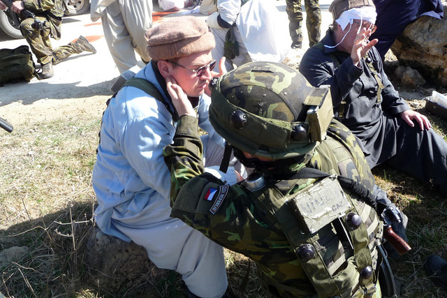 Cvičení Thorny Valley pokračuje. Simuluje se napadení patroly i jednání s afghánskými autoritami