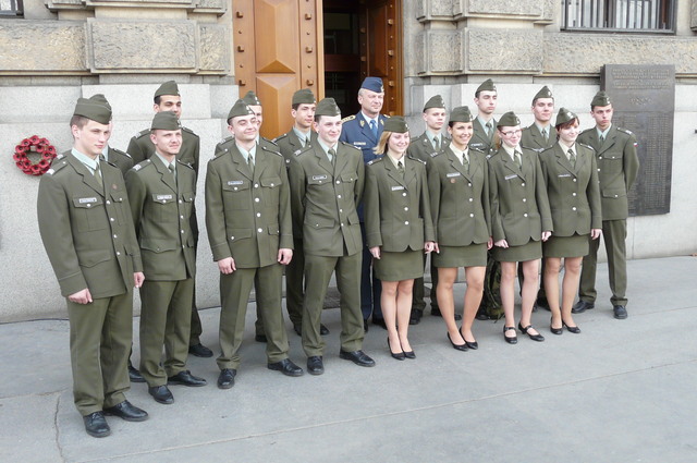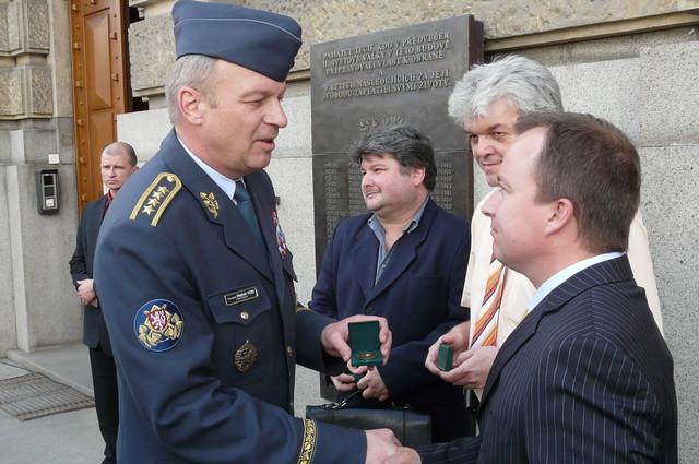 generál Picek předal pamětní minci pracovníkům podílejícím se na realizaci výstav před Generálním štábem AČR