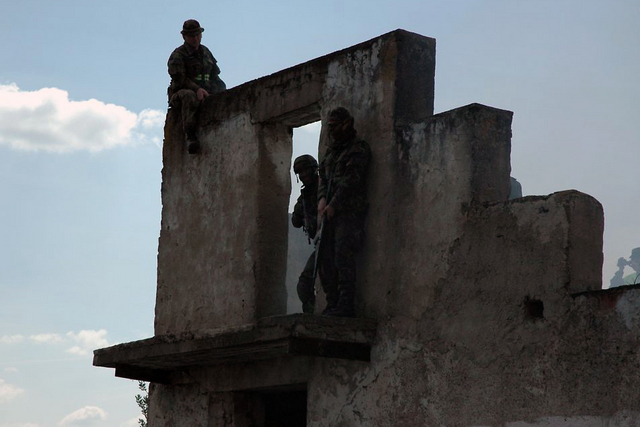 18.4.2011 Vojáky při práci pečlivě sledují instruktoři