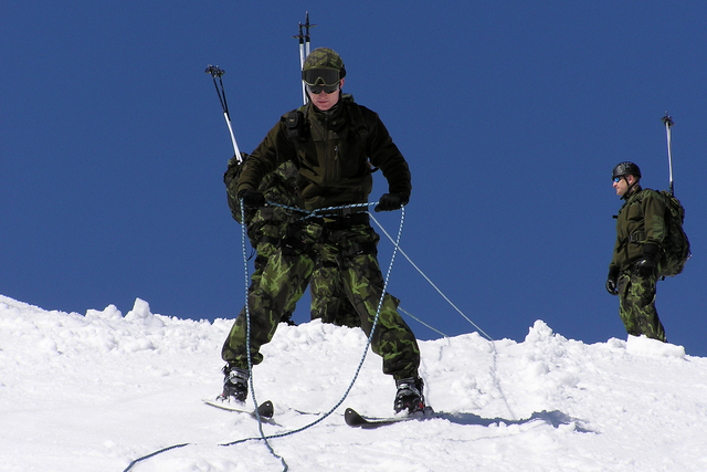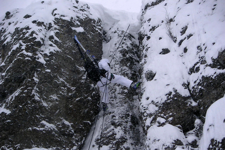 Nácvik sjíždění velmi strmých svahů pomocí horolezeckého lana