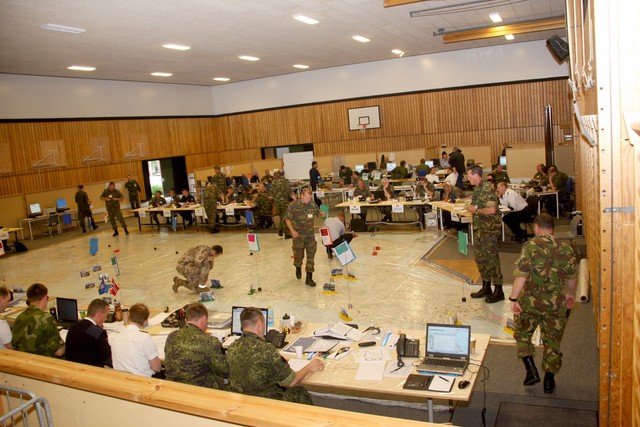 Ve štábu cvičení Brave Beduin vznikla obří mapa Dánska a přilehlých vod, na kterou se pravidelně zanášely veškeré údaje