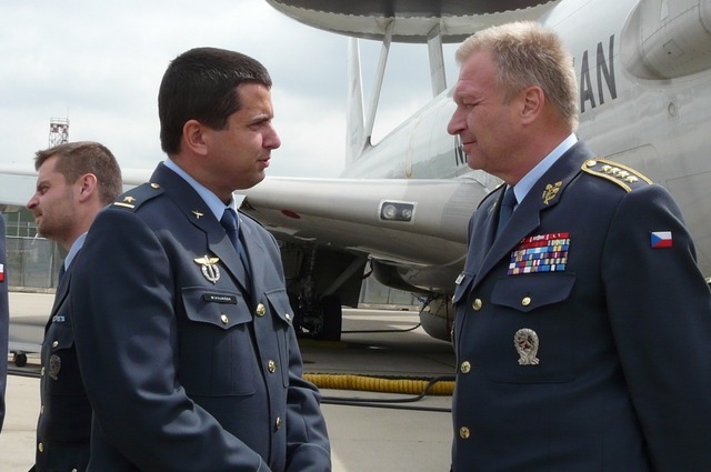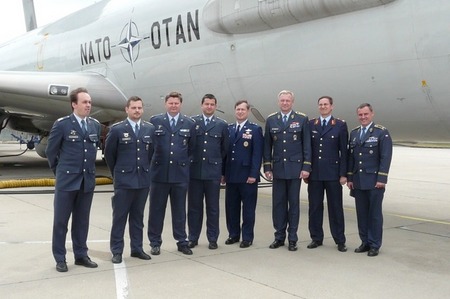Čtyři čeští vojáci sloužící na palubách AWACS na základně s velitelem sil NAEW&CF generálem Stephenem Smidthem,  generálem Vlastimilem Picek, generálem Jiřím Vernerem, generálem Burkhardem Pototzkym