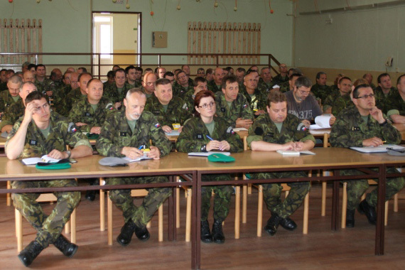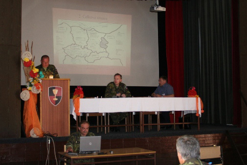 Náčelník štábu brigádní generál Pavel Rybák seznamuje přítomné se situací