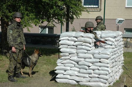 Kontrolně propouštěcí bod před vjezdem do posádky Stará Boleslav