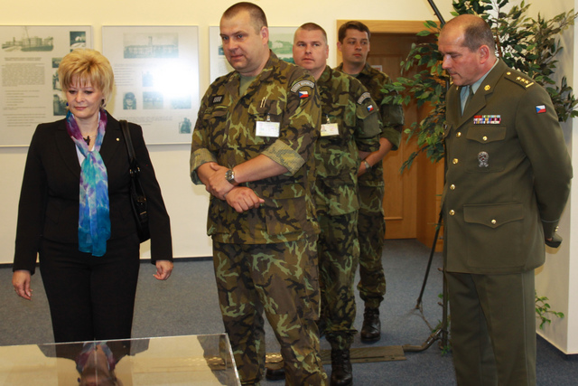 Liberecká primátorka paní Martina Rosenbergová v doprovodu velitele brigády plk. Knoppa (zcela napravo)