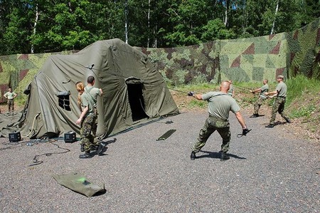 Uprostřed plukovník Jaromír Hlobílek, vlevo tisková mluvčí majorka Jolana Fedorková
