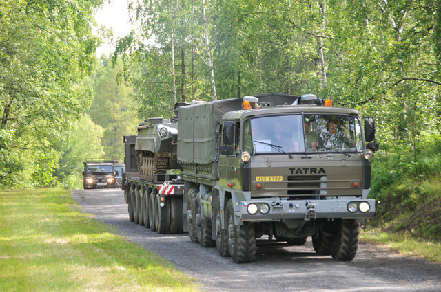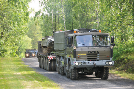 Klatovští řidiči navážejí na podvalníku další a další techniku na Den pozemního vojska - Bahna 2011
