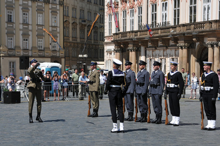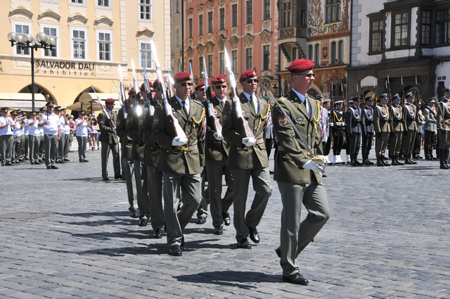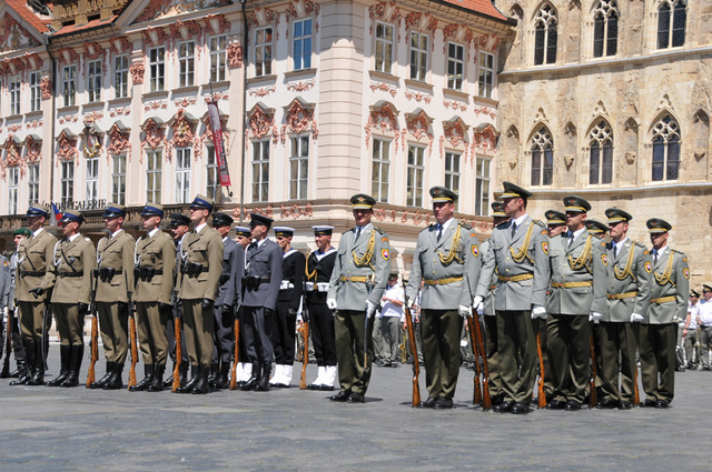 Na Staroměstském náměstí létaly pušky čestné stráže nad hlavami diváků
