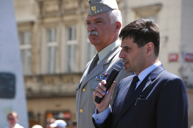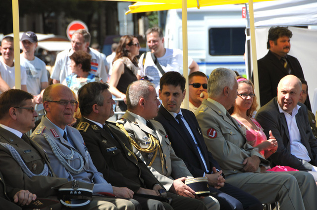 Exhibiční vystoupení zahájili náměstek ministra obrany Michael Hrbata a velitel pražského posádkového velitelství plukovník Pavel Kantor