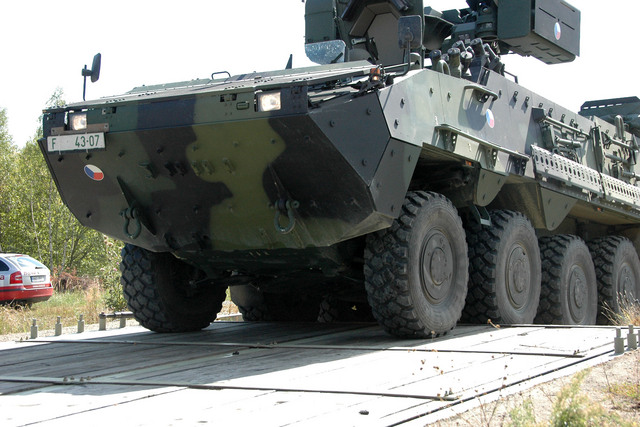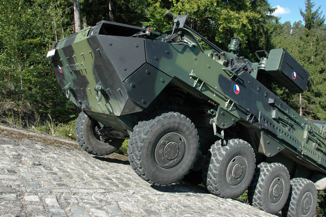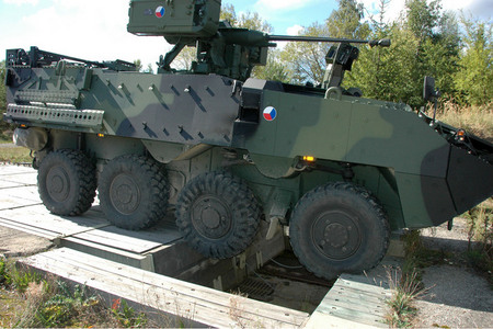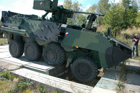 Pandur musel při zkouškách spolehlivosti překonat i řadu překážek - například schod o výšce 60 centimetrů