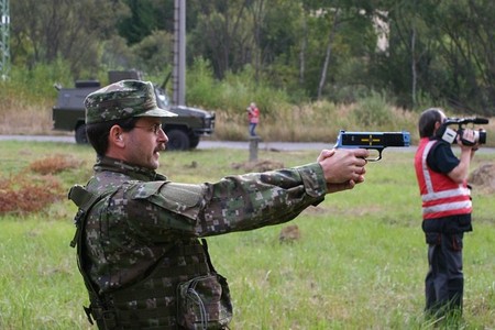 Češí vojenští policisté si kontrolují systém MILES, zda nebyli zasaženi