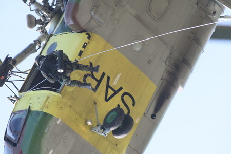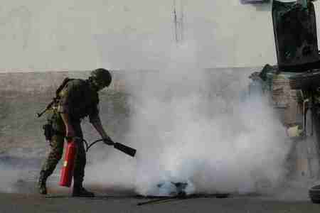 Zajištění pasivního demonstranta, který se u vjezdu do vojenského objektu připoutal k volantu