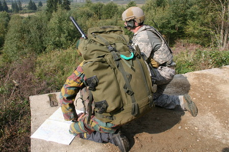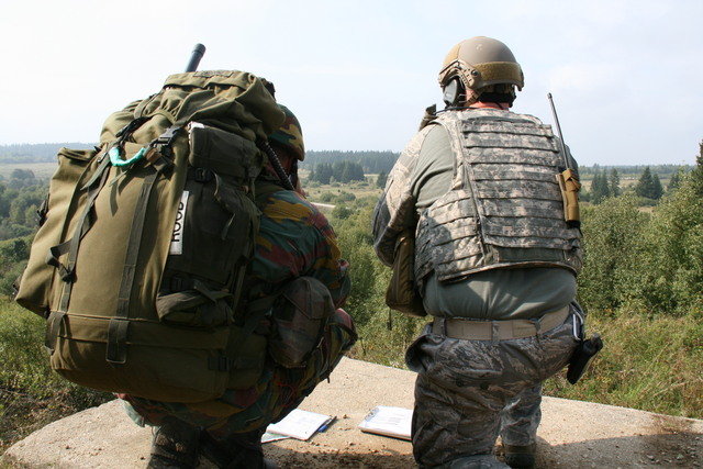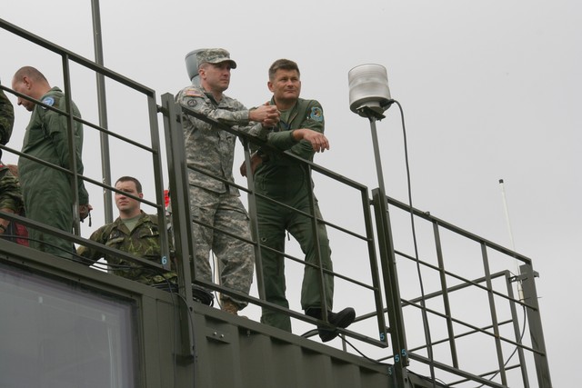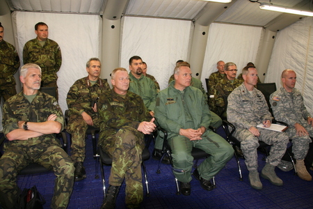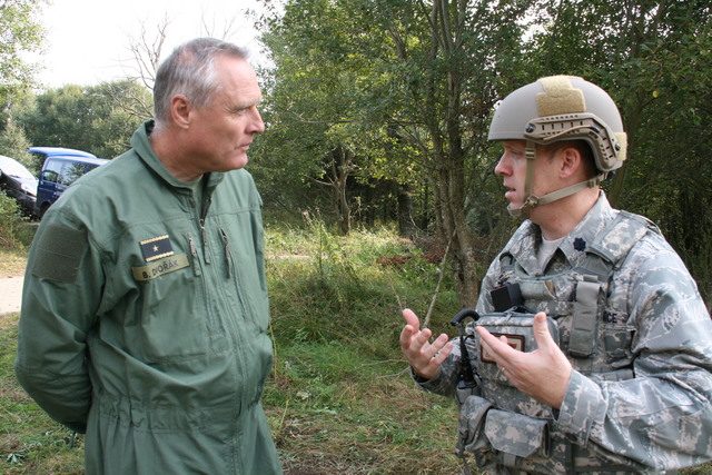 Ředitel sekce rozvoje druhů sil - operační sekce MO brigádní generál Bohuslav Dvořák v rozhovoru s představitelem školy USAFE AGOS