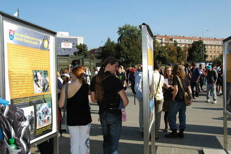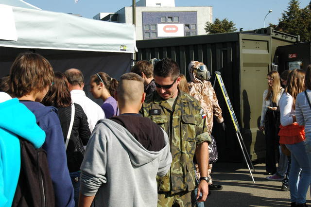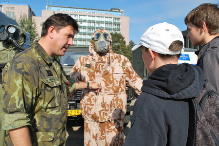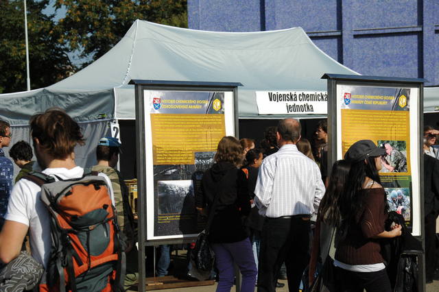 Diváci si prohlížejí výstavu Chemické vojsko AČR