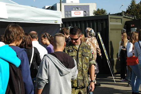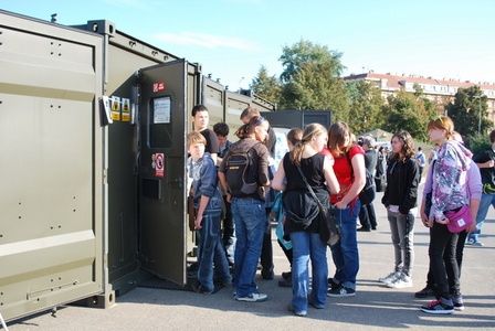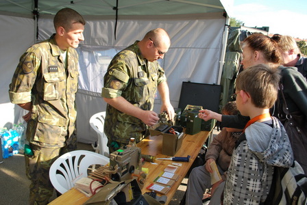 Návštěvníci si prohlíží přístroje pro radiační a chemický průzkum