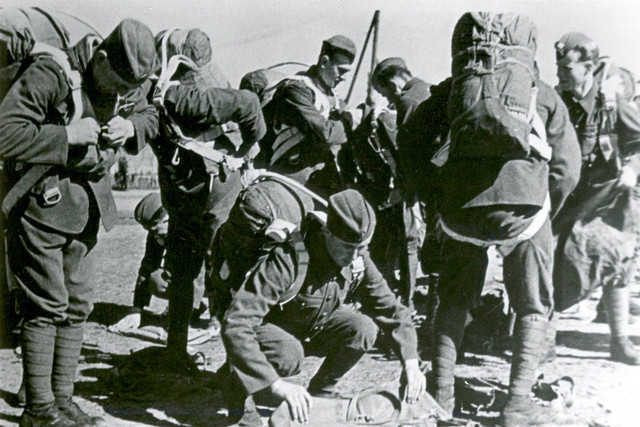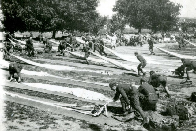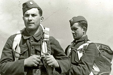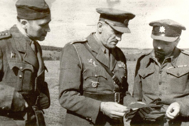Velitel brigády Vladimír Přikryl jedná na letišti Tri Duby s kapitánem Faitlem