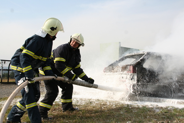 Po autonehodě musí hasiči při vzniklém požáru použít pěnidlo