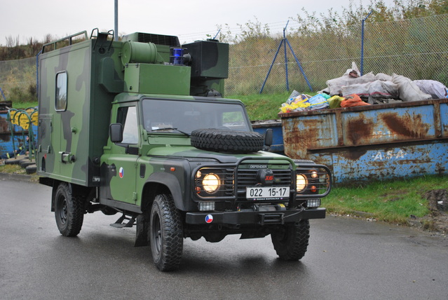 Chemici provádějí dekontaminaci techniky kartáčovým způsobem